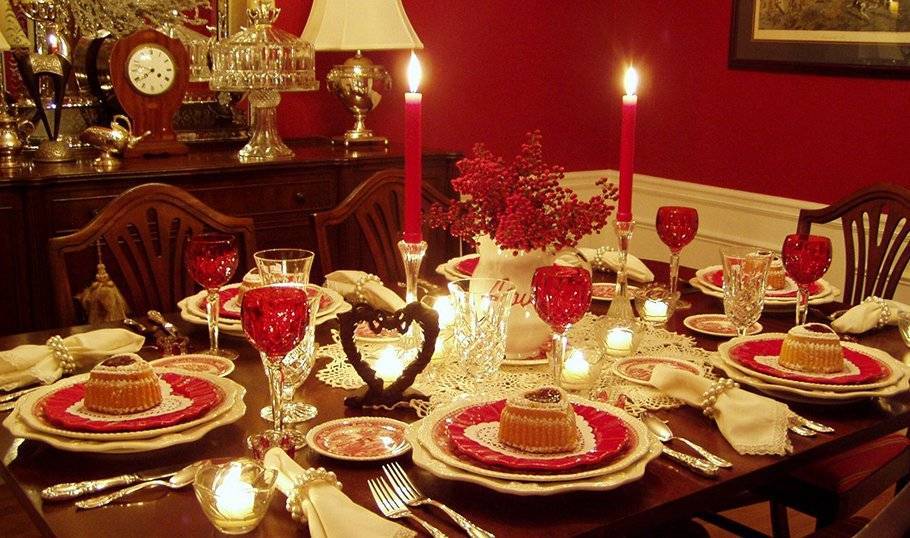В сервировке стола обязательно должны присутствовать красные оттенки.