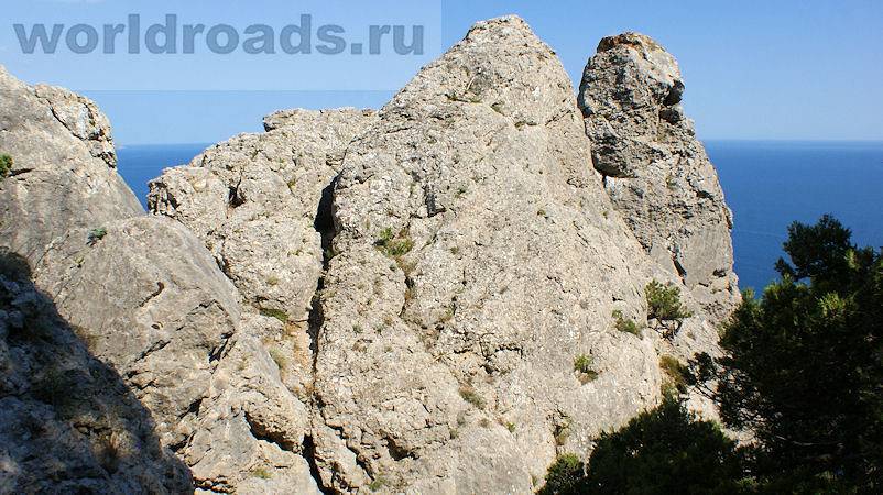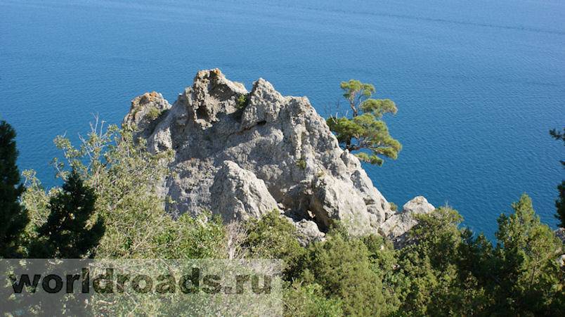 Начало этого маршрута Караул-Обы помечено туриком, небольшой пирамидкой из камней. Если отсюда пойти налево и вниз, можно выйти на Царский пляж. Но сейчас мы наверх.