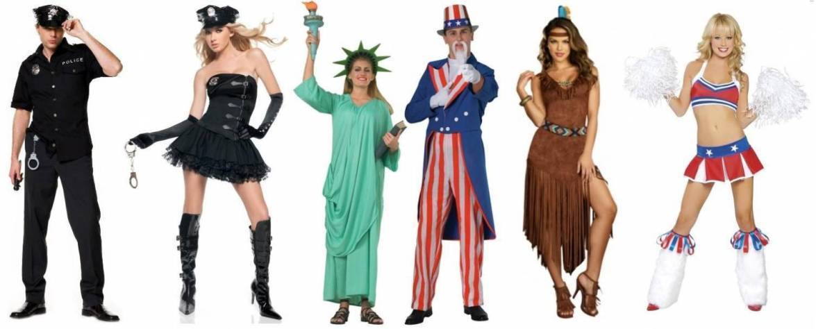 Если у вас в планах устроить костюмированную вечеринку, то тут идеальным будет прийти в костюме Капитана Америки, Авраама Линкольна, опасного ковбоя, индейца Дикого Запада, доллара, хот-дога, американского копа и т. д. Девушки на такую вечеринку, могут прийти в костюме милых зайчиков из Playboy, черлидерш, Мэрилин Монро, Статуи Свободы, сексуальной индианки или стаканчика кофе из Старбакса.