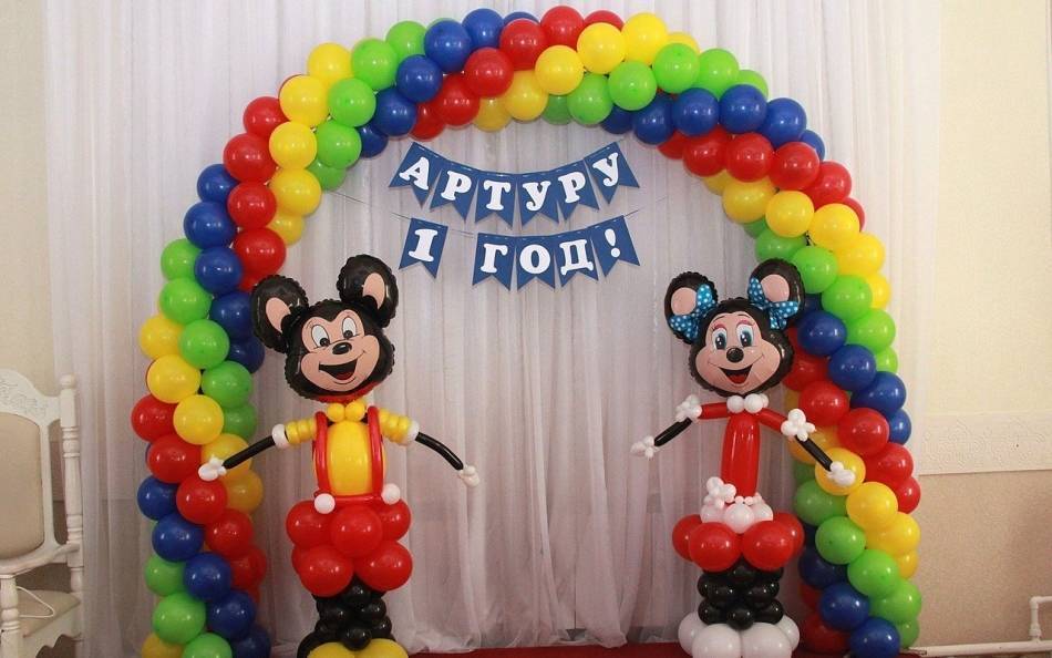 При оформлении праздничного зала для проведения дня рождения мальчика стоит отдавать предпочтение разноцветным или голубым пастельным оттенкам шариков разнообразных форм. Яркие цвета на детскую нервную систему действуют возбуждающе.