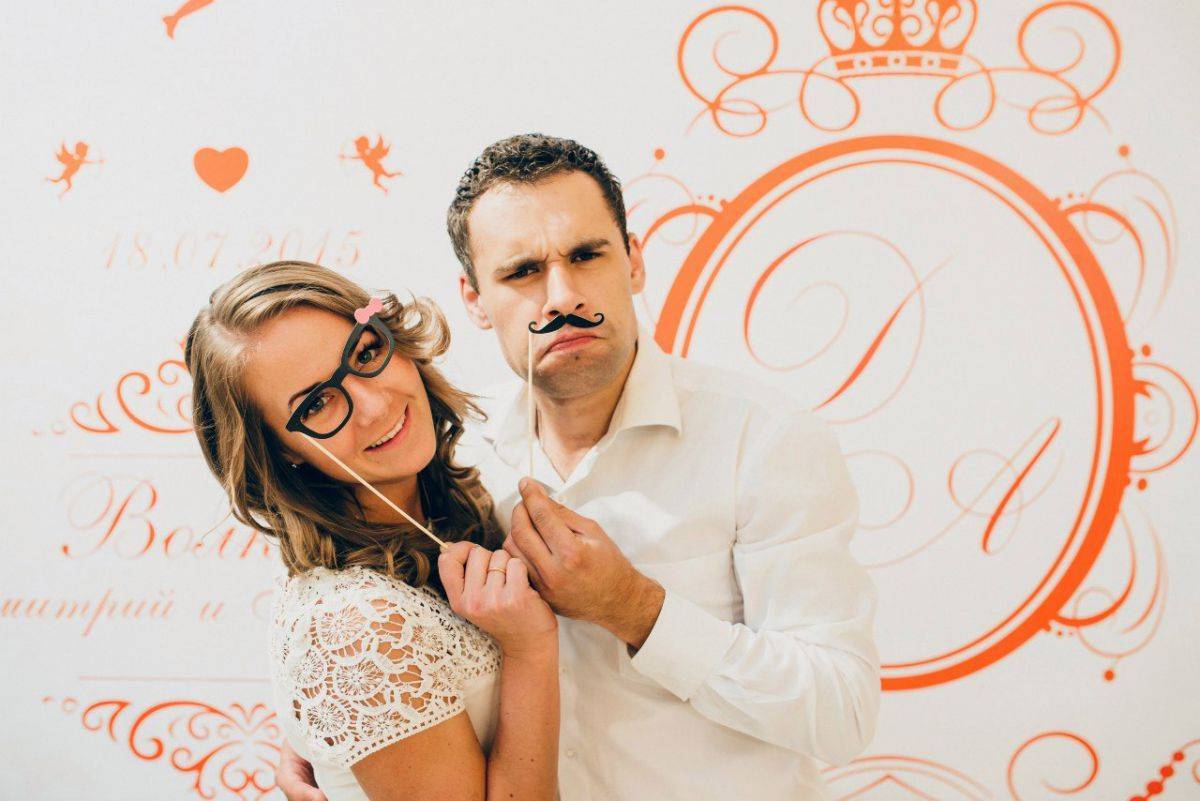Чаще всего на пресс-воллах размещают основную информацию о молодоженах и проводимом торжестве, а также небольшие рисунки: