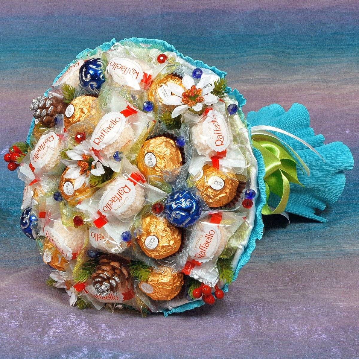 Композиции из сладостей, цветов и пышных лент станут незабываемым подарком. Но если необходимо подчеркнуть, что букет именно из сладостей, выбор идеи лучше остановить на открытом варианте. В качестве наполнения можно использовать леденцы, ириски, помадки и прочие кондитерские изделия.