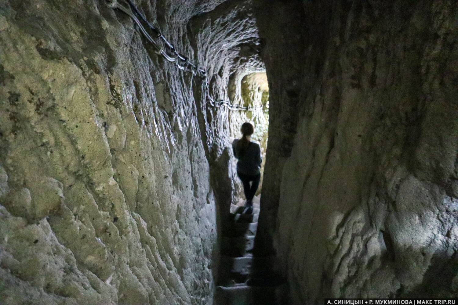 Спускаемся в подземный город Деринкую! В некоторых местах там такие узкие лестницы и туннели, что два человека не смогут разминуться.