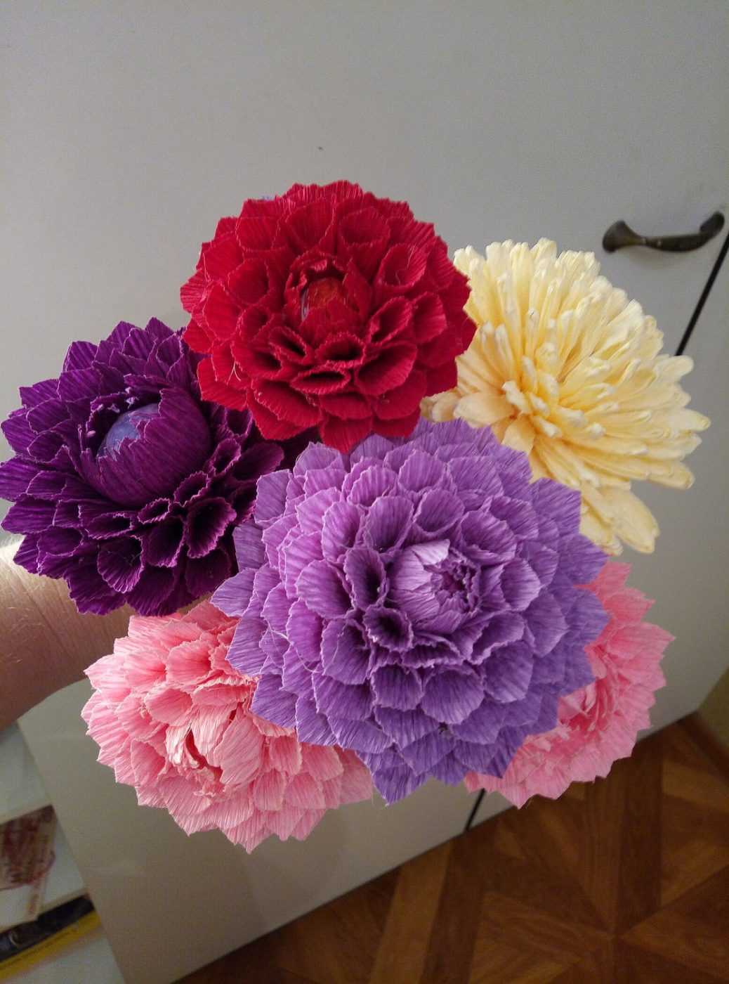 Варианты букетов из крепа