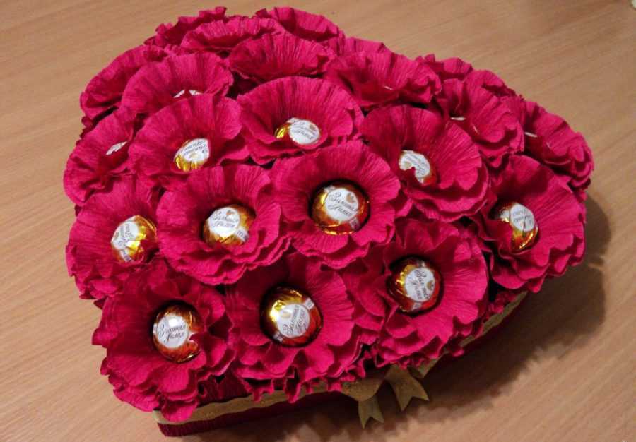 Несмотря на различные технологии, принцип изготовления бумажных цветов с конфетными элементами один.