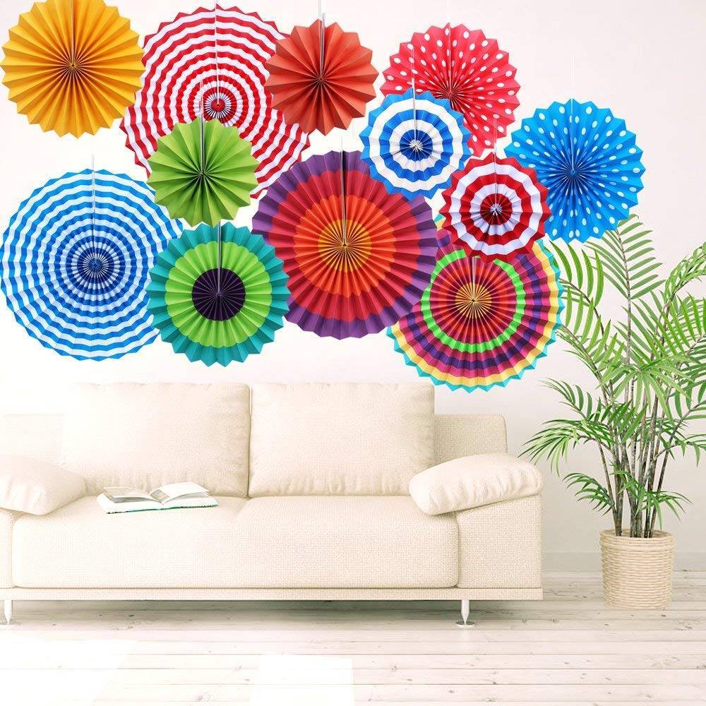 Такие простые элементы декора с радостью будут делать дети. Их можно менять в зависимости от времени года или настроения. Надеюсь, вам понравиться идея украшать комнаты с праздники декором из бумажных вееров.