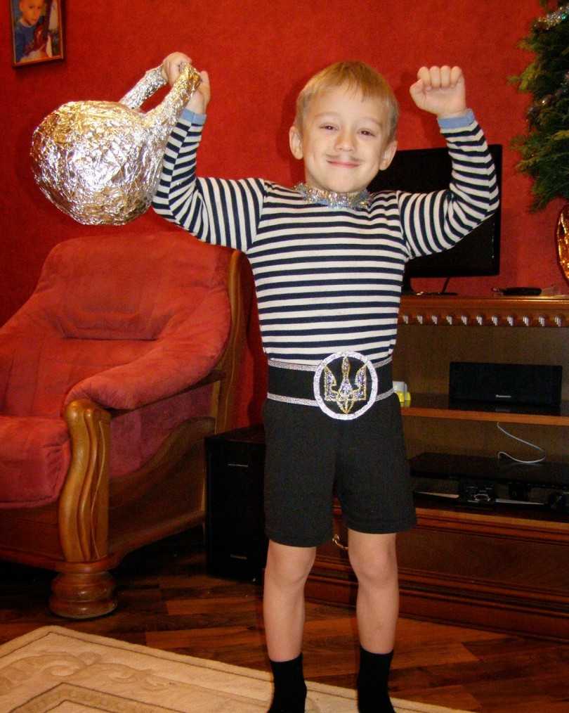 Как и для девочки, нет ничего особо сложного в том, чтобы смастерить новогодний костюм мальчику своими руками. Тем более, что подходящих идей более чем предостаточно. А можно и свои собственные задумки воплотить, ведь позади собственное детство с массой воспоминаний о новогодних празднованиях. Например, и сегодня мальчишки без ума от МУШКЕТЕРОВ, костюм которых – воплощение авантюрных приключений, мужского бесстрашия и обаяния. А состоит он из белой рубашки, бриджей, украшенных бантами на манжетах, а также сапожек, дополненных шпорами, которые можно вырезать из плотного картона, обклеить фольгой, проткнуть проволокой и укрепить на сапожках. Мушкетерский плащ выкраивается из атласной яркой ткани по форме полукруга, украшается крестом, нарисованным золотом или вырезанным из золотистой парчи и пришитым на лицевую сторону плаща. Шляпа клеится из черной плотной бумаги или просто выкрашенного в черный цвет ватмана. Украшается она ремешком с «золотой» пряжкой, а также настоящими перьями или же вырезанными из белой бумаги. Головной убор будет выглядеть богаче, когда его поля будут довольно широкими, а прикрепленные к ним перья – длинными и густыми. И конечно же, какой мушкетер без шпаги! Купить ее можно в любом магазине игрушек или сделать самим из жесткого проволочного прута, например.