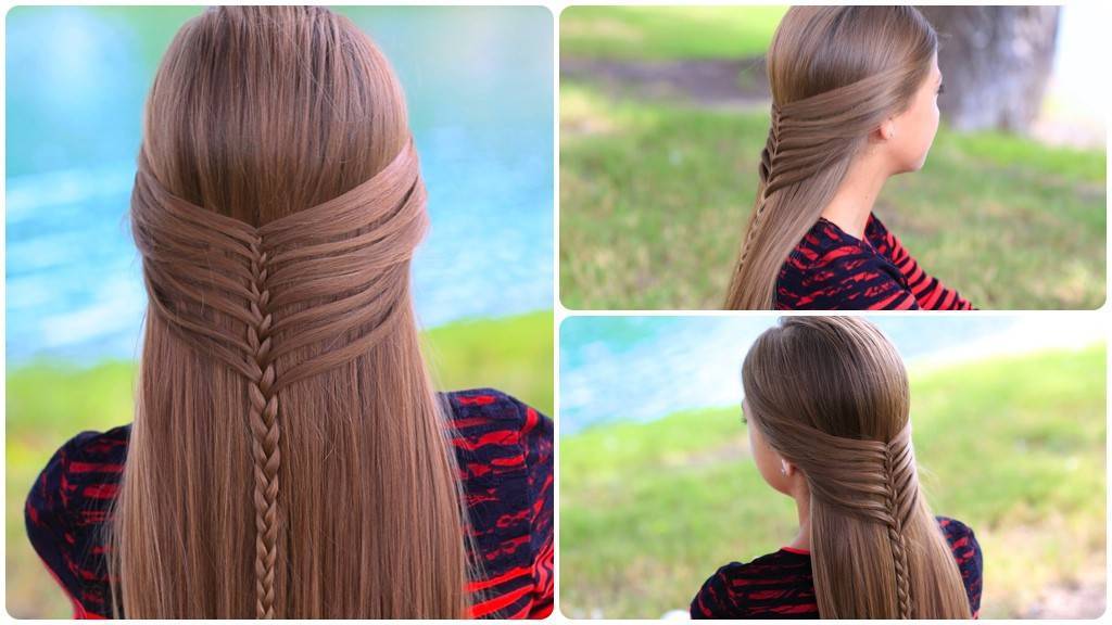 Необычная интерпретация плетения – когда коса комбинируется с распущенными волосами, хвостиками.