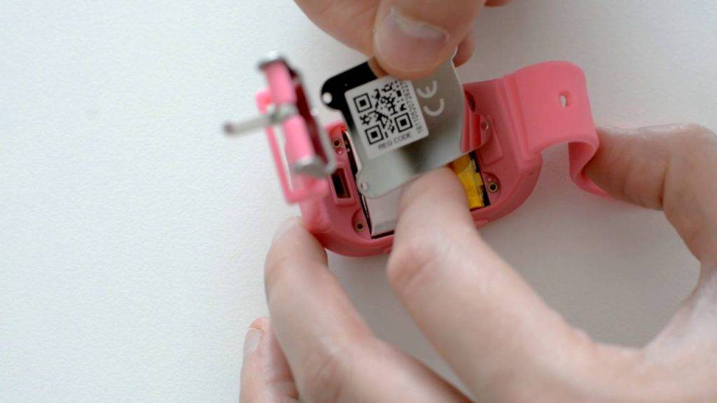 Теперь можно вставить симку в детские часы. Для этого необходимо снять заднюю крышку, открутив 4 болта (для модели Q50 отвертка идет в комплекте). Приподнять аккуратно аккумулятор, т. к. он не снимается полностью и соединен проводами с корпусом часов. Сдвигаем вправо до щелчка слот для сим-карты. Вставляем симку и защелкиваем слот.