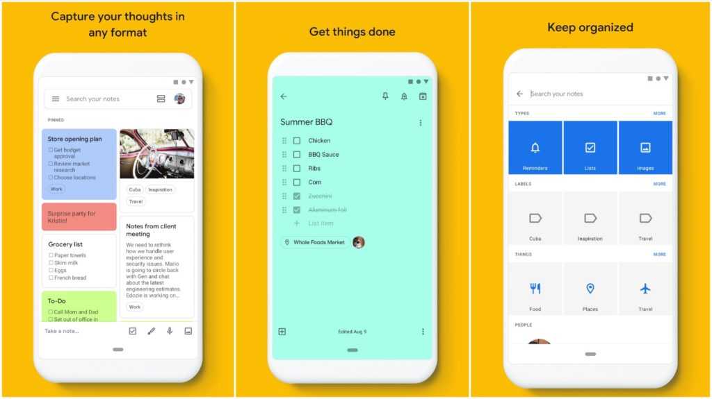 Довольно простое и мощное приложение для создания заметок. Оно поддерживает множество заметок, включая обычные заметки, списки, фотографии и даже заметки о местоположении. Конечно, это приложение очень удобно для составления списков продуктов. Просто заполните список различными продуктами, дайте заметке имя, и все готово. Вы также можете делиться заметками с друзьями, родственниками и т.д. Таким образом, каждый может видеть список, добавлять в него или отмечать элементы. Приложение чрезвычайно полезное и функциональное. Кроме того, оно совершенно бесплатное, синхронизируется с различными телефонами и имеет некоторые организационные функции.
