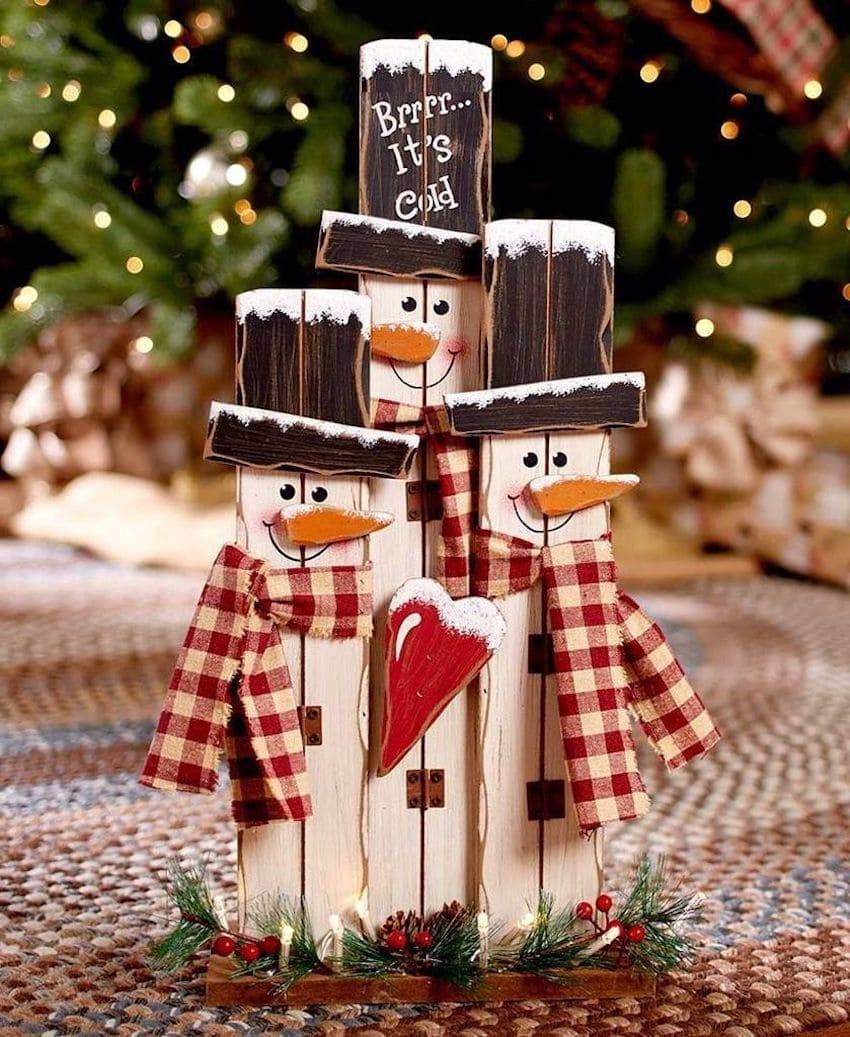 Очень красивые получаются снеговики изготовленные из досок и фанеры. Подобный материал найдется у каждого. Вам лишь понадобится применить творческий подход и выделить немного свободного времени.