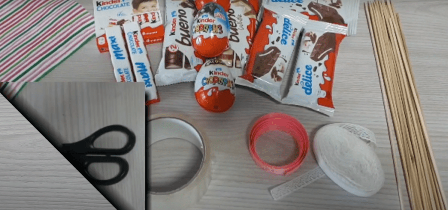 Вероятно, нет человека, который равнодушно относился б к киндер-сюрприз. В интернете можно найти не одно пошаговое изготовление букетов из конфет киндер-сюрприз. Можно найти как более легкие и быстрые варианты, так немного и посложнее. Есть довольно-таки интересный вариант для данного букета, только необходимо подготовить: