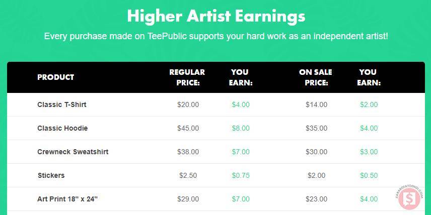 Одним из недостатков Teepublic является то, что вы не можете устанавливать свои собственные цены, как на многих других платформах.