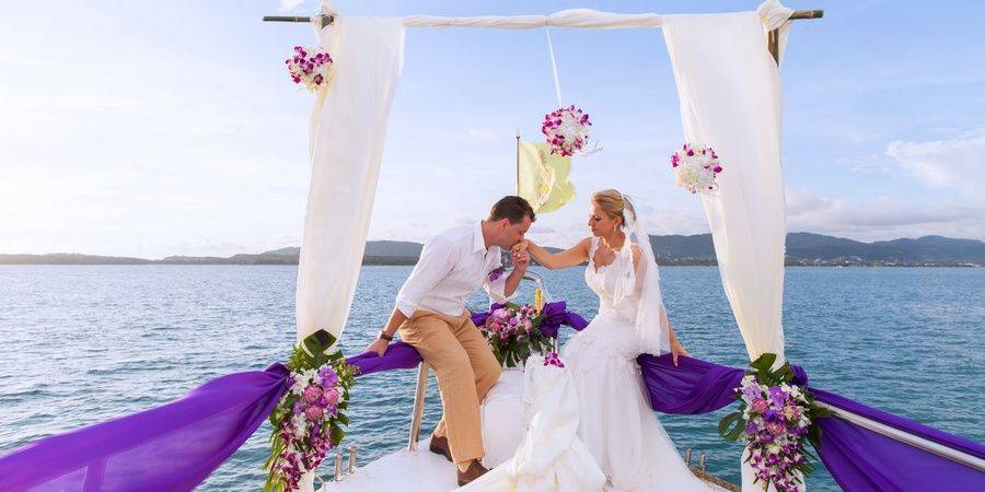 Кстати, свадьбу на островах можно провести не только на красивом берегу, но и на борту водного транспорта, например, на яхте. Главное, ее заранее арендовать и украсить. Представьте: вас распишут посреди водной глади, сверкающей в солнечных лучах. Такой вариант идеально подойдет для свадьбы для двоих.
