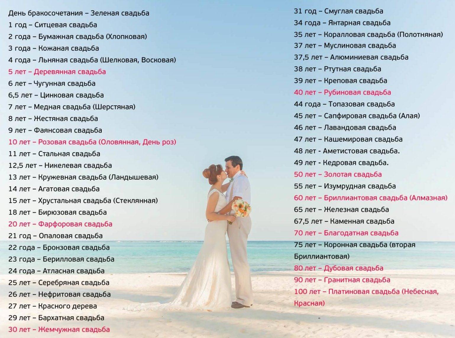 Все виды годовщин свадеб