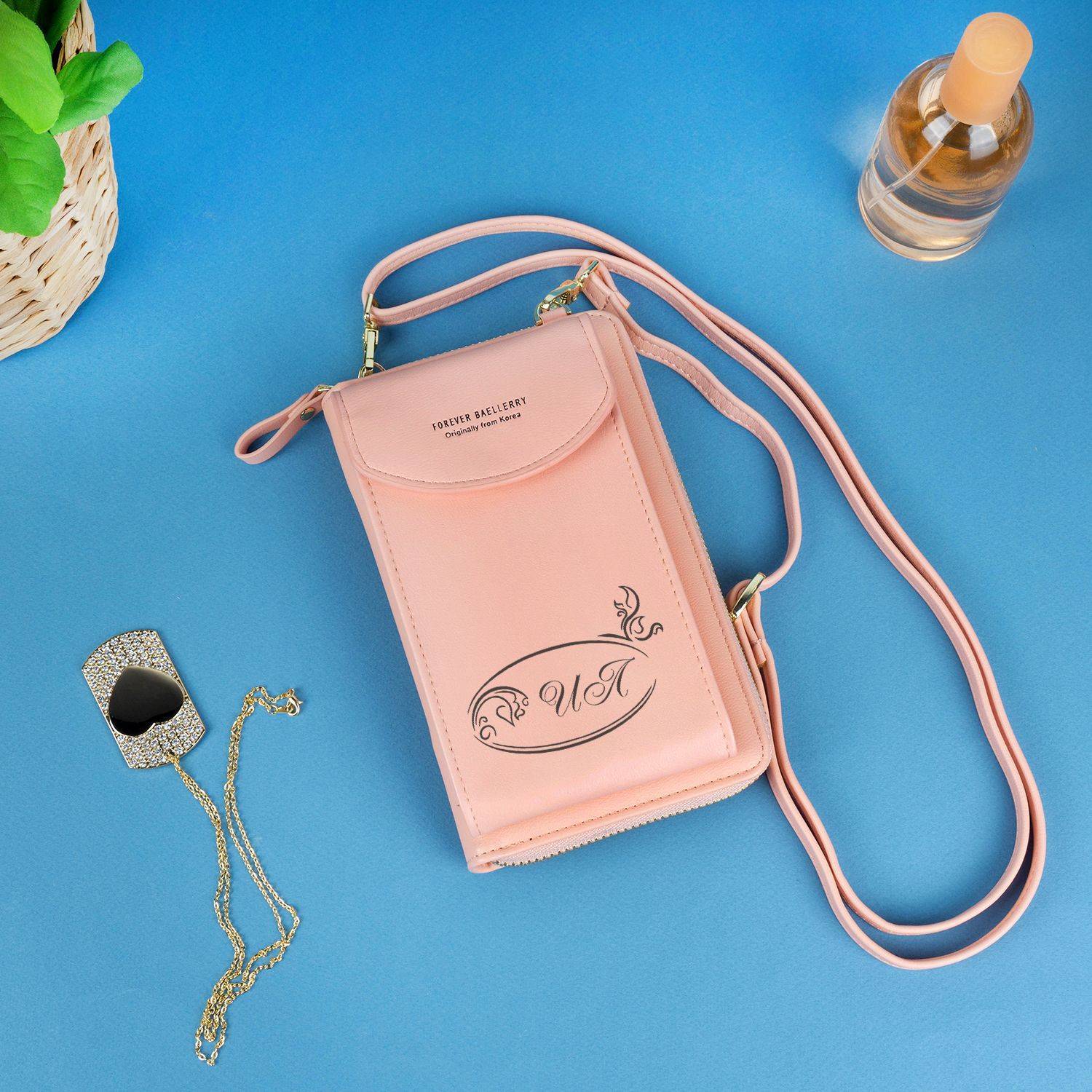 Портмоне с наплечным ремнем «Комфорт Пинк» с инициалами