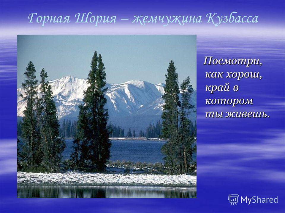 Горная Шория – жемчужина Кузбасса Посмотри, как хорош, край в котором ты живешь.