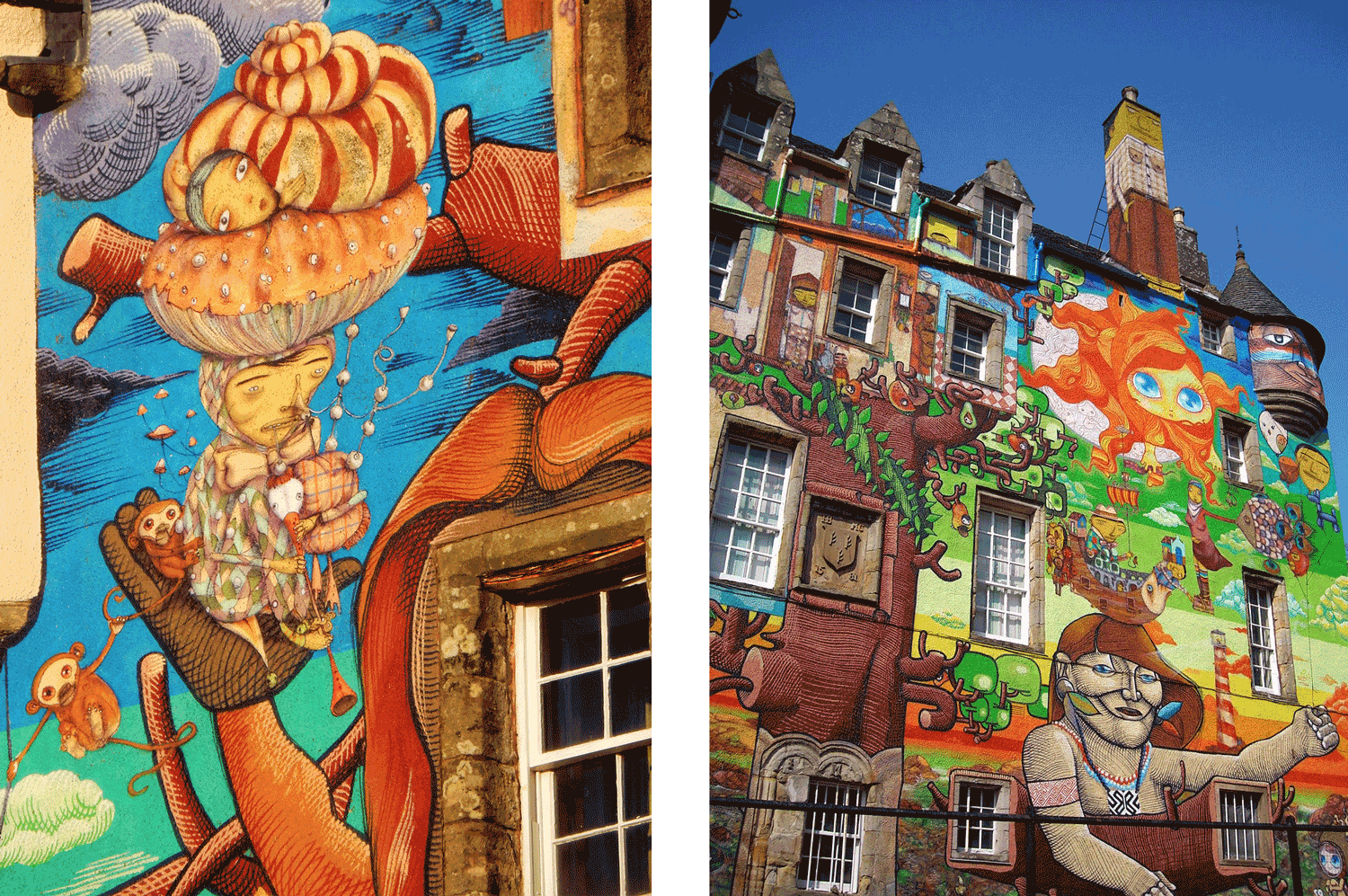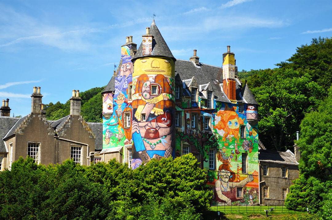 Описание и история: замок Кельбурн был построен в XIII веке, неудивительно, что к 2007 году ему требовалась серьёзная реконструкция. Владелец замка, граф Патрик Бойл (граф Глазго), предложил государству оригинальную идею — разрисовать фасад задмка — и пригласил знаменитых уличных художников.