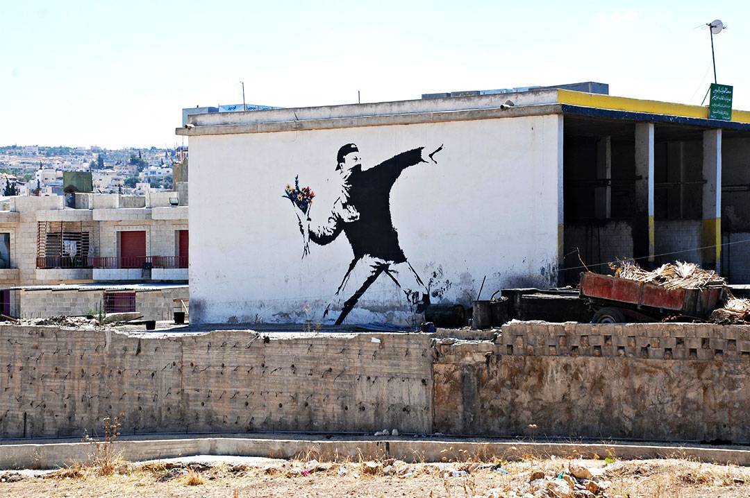 «Бросатель цветов» изображает человека в маске, который вместо коктейля Молотова кидает букет цветов. Смысл очевиден — художник не хочет войны между Израилем и Палестиной.