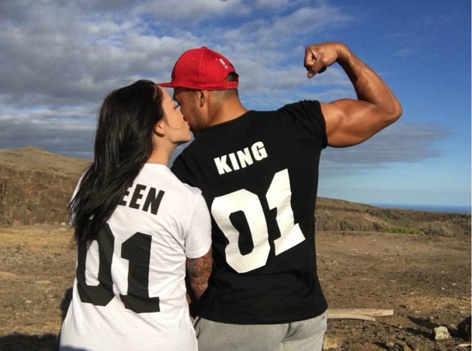 - Парные футболки с забавными романтическими надписями и рисунками. Влюбленные в них выглядят очень мило и трогательно.
