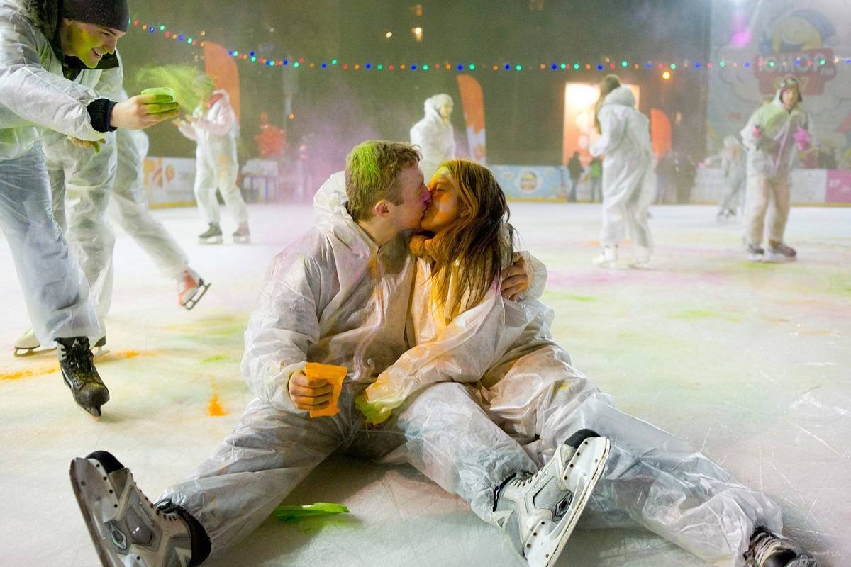 Сбор всех целующихся для того, чтобы получить коньки и билет, состоится в 17:00. Регистрация будет возможна только до 17:45. Организаторы подчеркивают, что вход на локацию одноразовый и только при наличии браслетов или билетов.