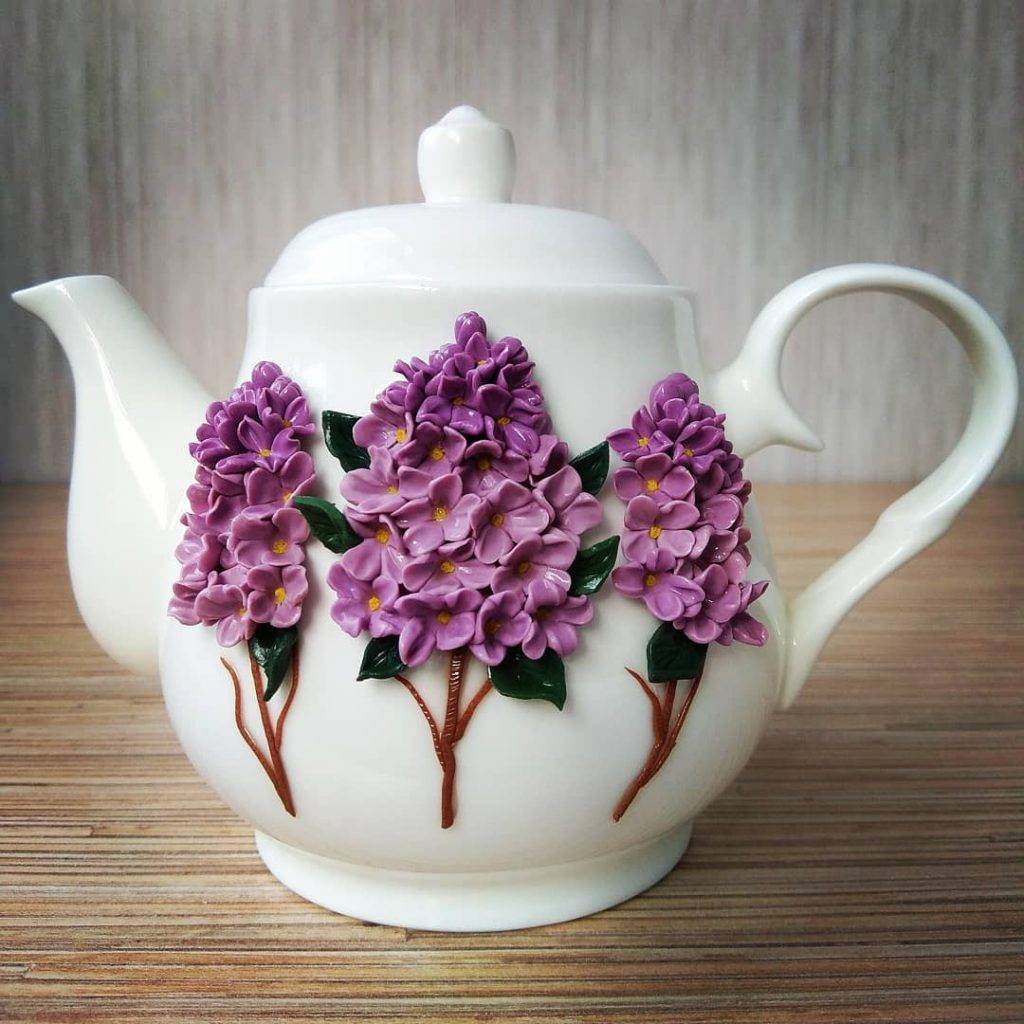 - Можно сделать и небольшие декоративные фигурки, как лягушки на верхнем чайнике.