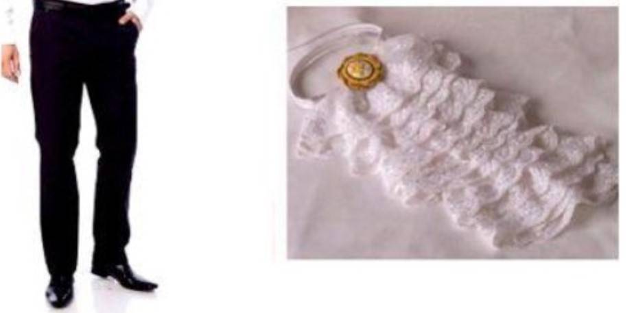 Две полоски завяжите на штанины чуть выше щиколоток, две на рукавах выше запястья. Одну повяжите на пояс, и одну через туловище крест-накрест.