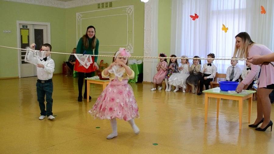 - Обязательно устройте конкурс или сценку с танцем детей. Это то, что обязано быть на празднике для мам. Нет ничего умилительнее малышей, которые присядают под музыку или изображают цыплят, следующих за курочкой-воспитателем, например.