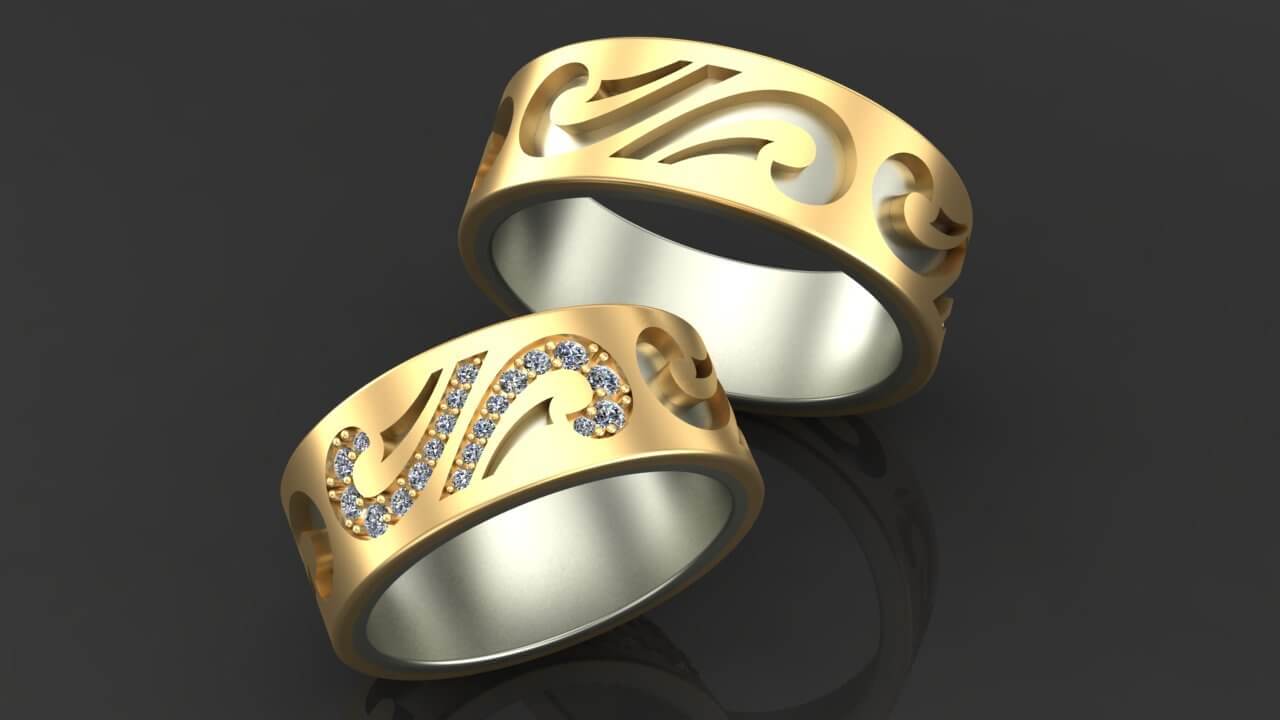 Похожие узоры на украшениях жениха и невесты покажут единство их мировоззрений, убеждений, жизненных целей и намерений. Отлично подойдут модели с растительным узором или особенным орнаментом. Причем, украшения продаются в паре.
