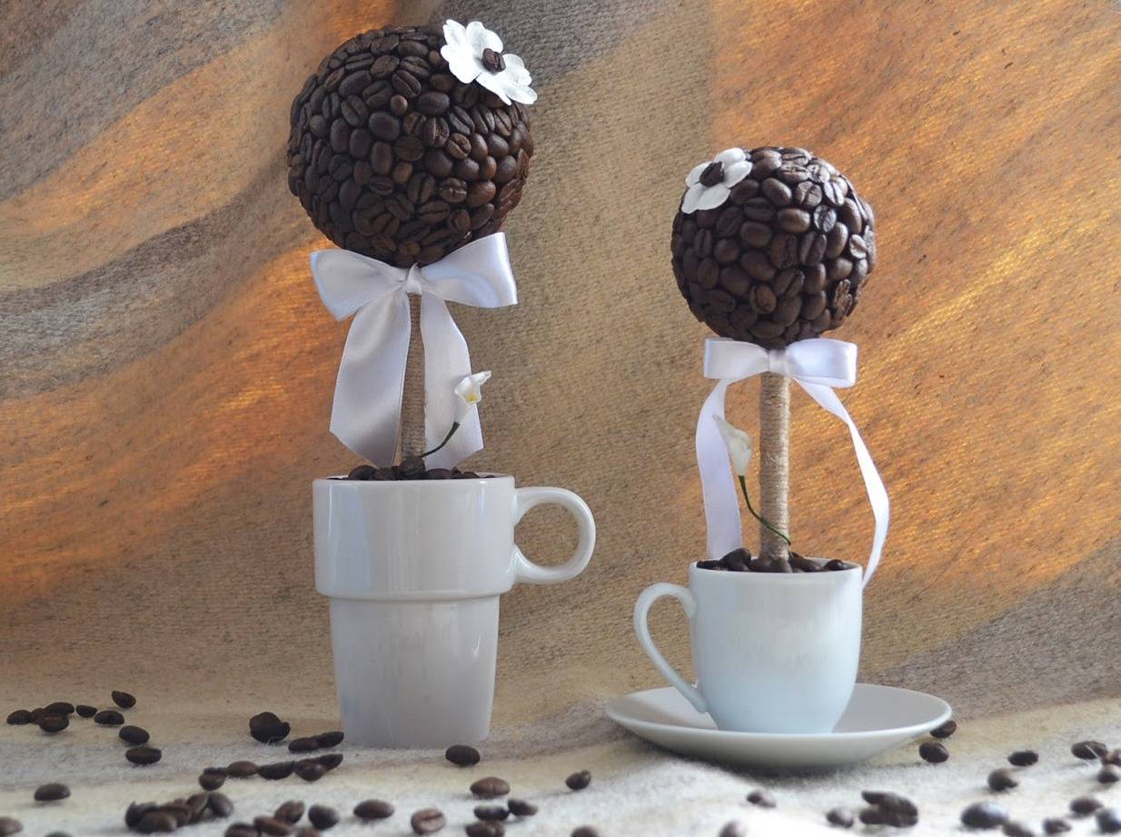 Изящные топиарии из кофе: красивый декор и дружелюбная атмосфера.