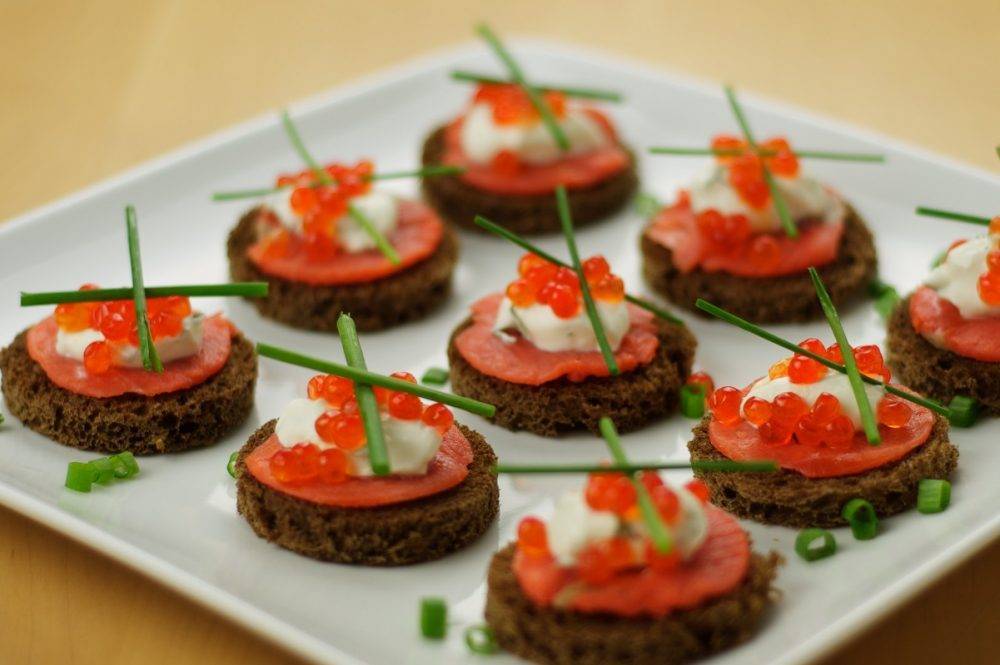 Канапе с лососем и красной икрой