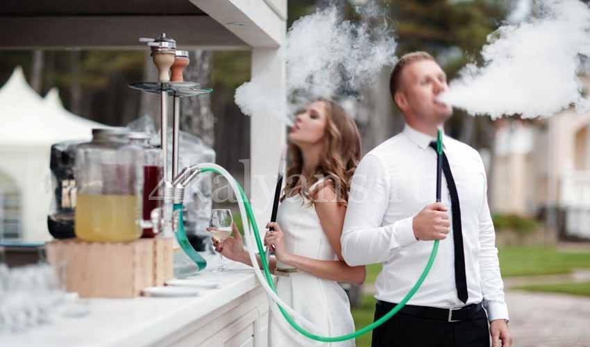 Пожалуй, это единственный вид кейтеринга, который не имеет ничего общего с ресторанным бизнесом. Компания в данном случае не занимается приготовлением пищи. Она доставляет к месту проведения мероприятия кальян с дополнительными приспособлениями и табачными смесями на любой вкус.