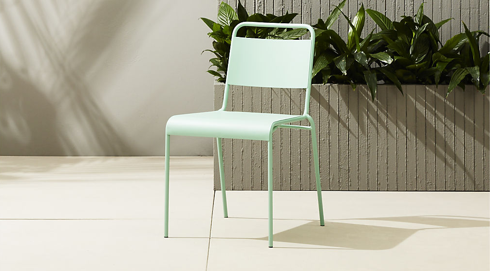 Легкие пластиковые стулья – то что нужно! Пусть они будут настолько цветными, насколько это возможно. Но только держитесь в рамках гаммы, выбранной для стола, – оранжево-розовой. Можно разбавить ее и другими, но они не должны быть ярче доминирующих цветов.