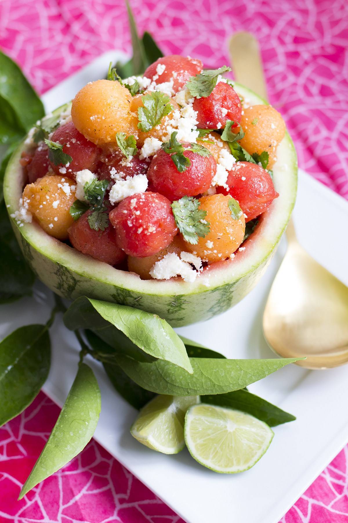 Салат из арбуза с сыром и кориандром – красочная и легкая закуска. Подать его можно к первым коктейлям.