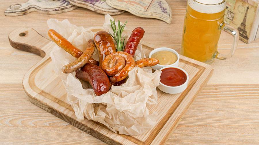 - горячие блюда – колбаски, жареные или копченые крылья, свиные сардельки, картофель фри.