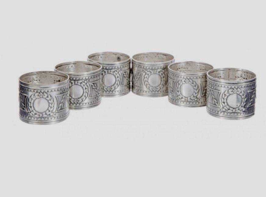 Этот набор от проверенного временем отечественного производителя, пользуется заслуженным спросом среди потребителей. Комплект состоит из 6 колец и подарочной упаковки, которая может использоваться для последующего хранения дорогостоящего комплекта. В качестве материала используется серебро 925 пробы и нейзильбер. Поверхность изделий гладкая. В качестве декоративного элемента используются объемные цветки, которые выгравированы по поверхности колец. Отличное решение не только для сервировки праздничного стола, но и каждодневного пользования. Также комплект станет прекрасным подарком молодоженам или на новоселье.