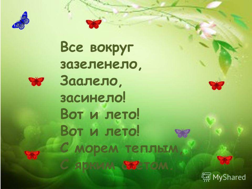 Все вокруг зазеленело, Заалело, засинело! Вот и лето! С морем теплым, С ярким светом.