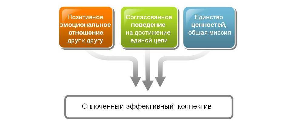 Чтобы группе сплотиться, у нее должен быть единый подход к рабочему процессу м взаимопонимание. Мотивация и поощрения могут стать отличным подспорьем в этом деле. Сплочение коллектива — это совокупность определяющих факторов межличностных отношений, продуктивная организация жизненных мотивов в пределах совместной деятельности. Для сплоченности важен социально-психологический климат в коллективе и взаимопонимание между руководителем и подчиненными.
