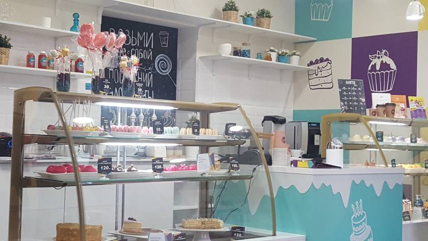 “Внутри нас встретило уютное кафе. Небольшая витрина с тортами и сладостями, пирожными, зефиром. Рядом стояли столы и стулья, где можно посидеть с чашечкой чая или кофе и попробовать пирожное. Милые девушки предложили подождать остальных участников. “
