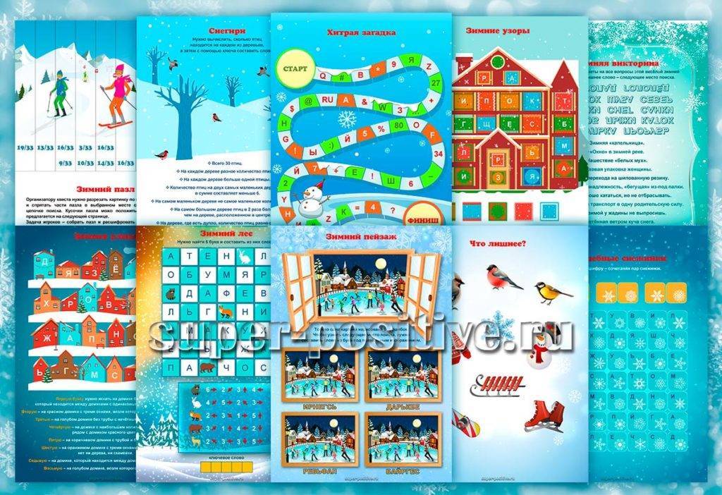 Все участники могут совместно решать новогодние задания квеста, например, если вы решили провести квест для коллектива и вручить всем новогодние подарки (сюрпризы). Задания: Все задания полностью готовы к проведению квеста. Вам только предстоит выбрать наиболее подходящие места — тайники для вашего офиса и распечатать карточки с заданиями. Квест состоит из 10 карточек с заданиями и 10 мест тайников соответственно. Жанр квеста: активный квест с поиском (вручение) подарка. Места-тайники в квесте:◊ Принтер◊ Растение◊ Батарея◊ Cтул◊ Зеркало◊ Компьютер◊ Газета◊ Красная папка◊ Там, где кофе◊ В шкафу коробка Необходимый реквизит:◊ 10 конвертов яркого цвета, чтобы положить в них карточки с заданиями.◊ любая подарочная коробка — для шуточного начала квеста. Об этом детально читайте ниже в разделе «Сюжет квеста». В комплект готового квеста входит три PDF файла:1. Файл «Инструкция к квесту», содержит детальный перечень необходимых действий для подготовки квеста к проведению.2. Файл «Квест» содержит все карточки с заданиями, которые необходимо будет решить участникам.3. Файл « Квест с ответами» содержит весь перечень заданий с подробными ответами.Данные файлы необходимо будет распечатать на черно-белом или цветном принтере. Другие квесты на сайте: