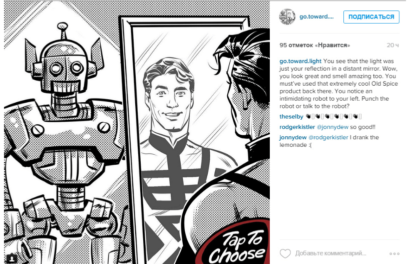 Такой вид сторителлинга придуман не вчера. Во многих странах ещё в 1960–1970-х годах стали выпускать интерактивные книги для детей и взрослых. Например, в США создали серию «Выбери себе приключение»: там по ходу повествования читатель делал выбор, в зависимости от него оказывался на той или иной странице книги и таким образом вместе с героем проходил через приключения. Концовок было несколько — счастливая, грустная и несколько тупиковых. Это стимулировало проходить игру много раз заново, открывая всё больше граней истории. В России тоже выпускают такие книги, где предлагается попробовать себя в роли знаменитого сыщика или первооткрывателя.