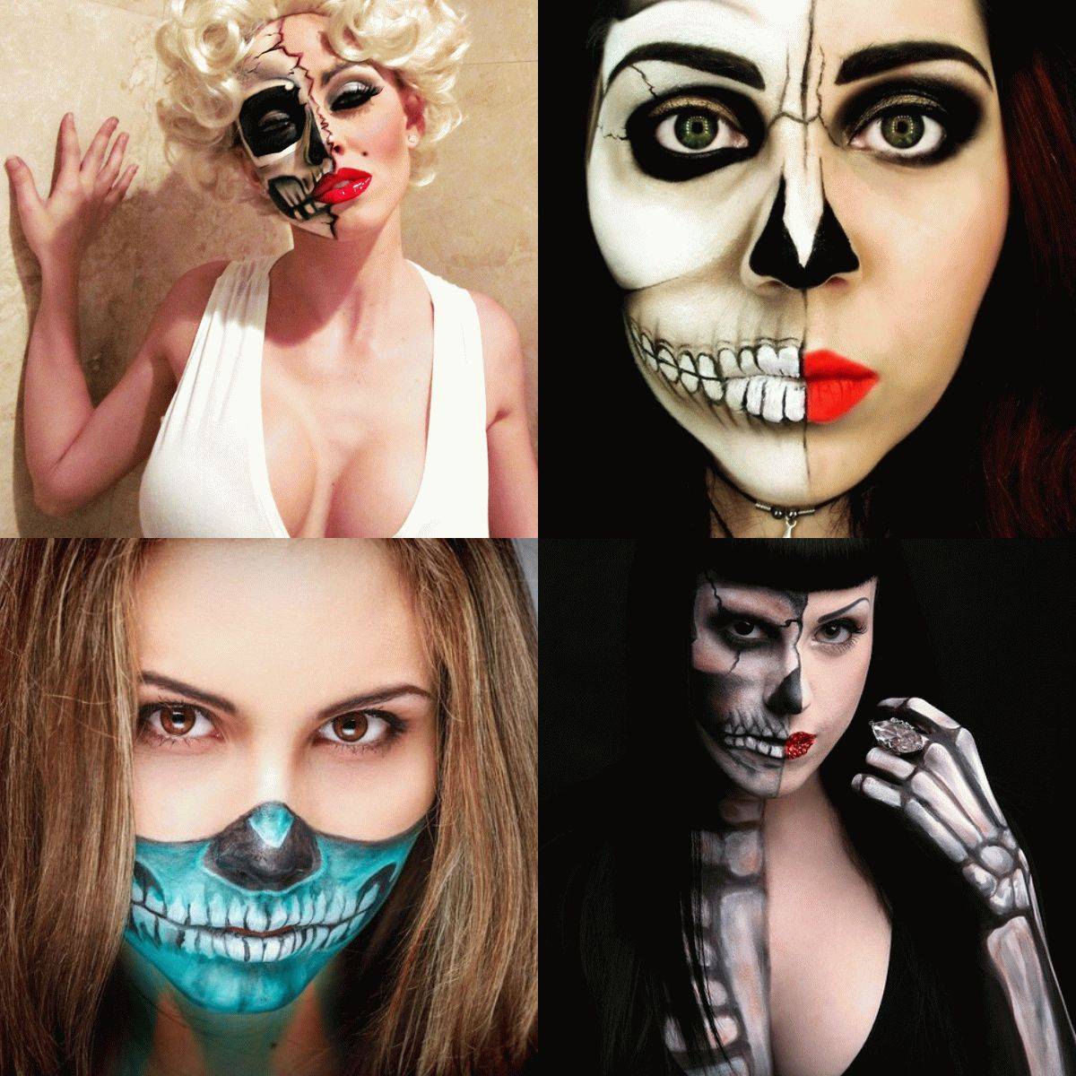 Настоящий хит праздника –макияж в виде двойного лица. Причем, есть несколько типов такого макияжа.