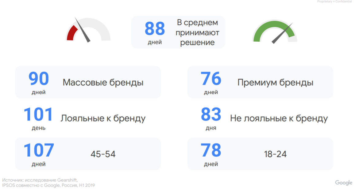 А в 2019 году перед покупкой пользователи обычно рассматривали около шести брендов, отмечает Google.