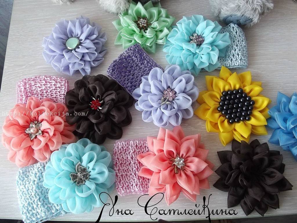 Следуя нашему мастер-классу, вы можете сделать цветы не только из атласных лент, но и из органзы. Чем не повод пустить в дело старые ленты для детских бантиков?