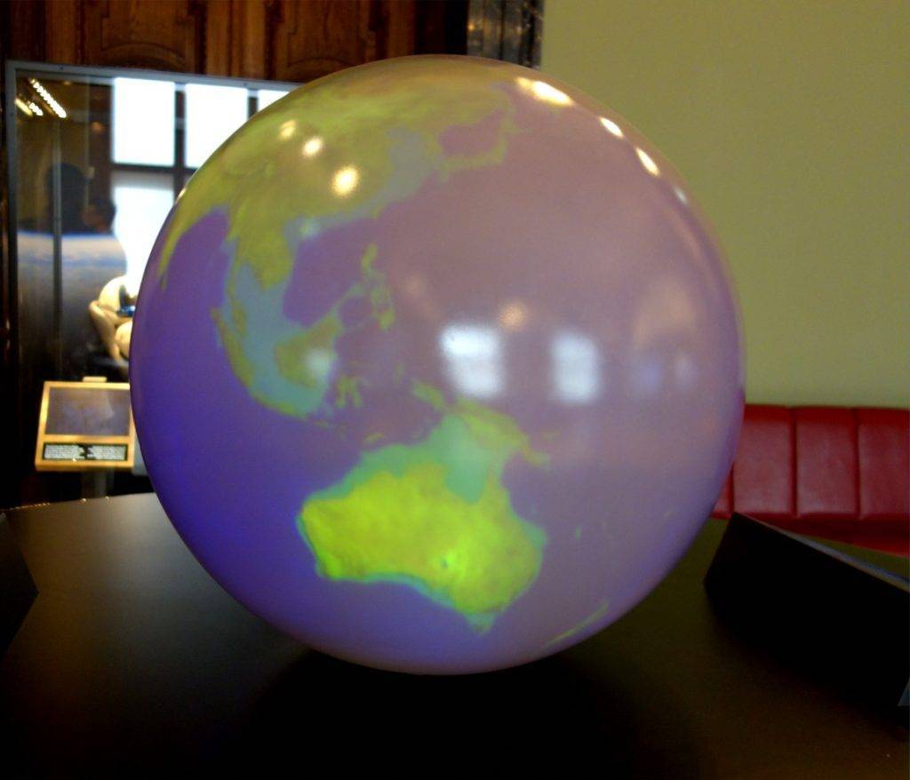 Есть макет округлого шара, на котором простым нажатием кнопок можно наблюдать любую известную нам планету в трёхмерном пространстве.