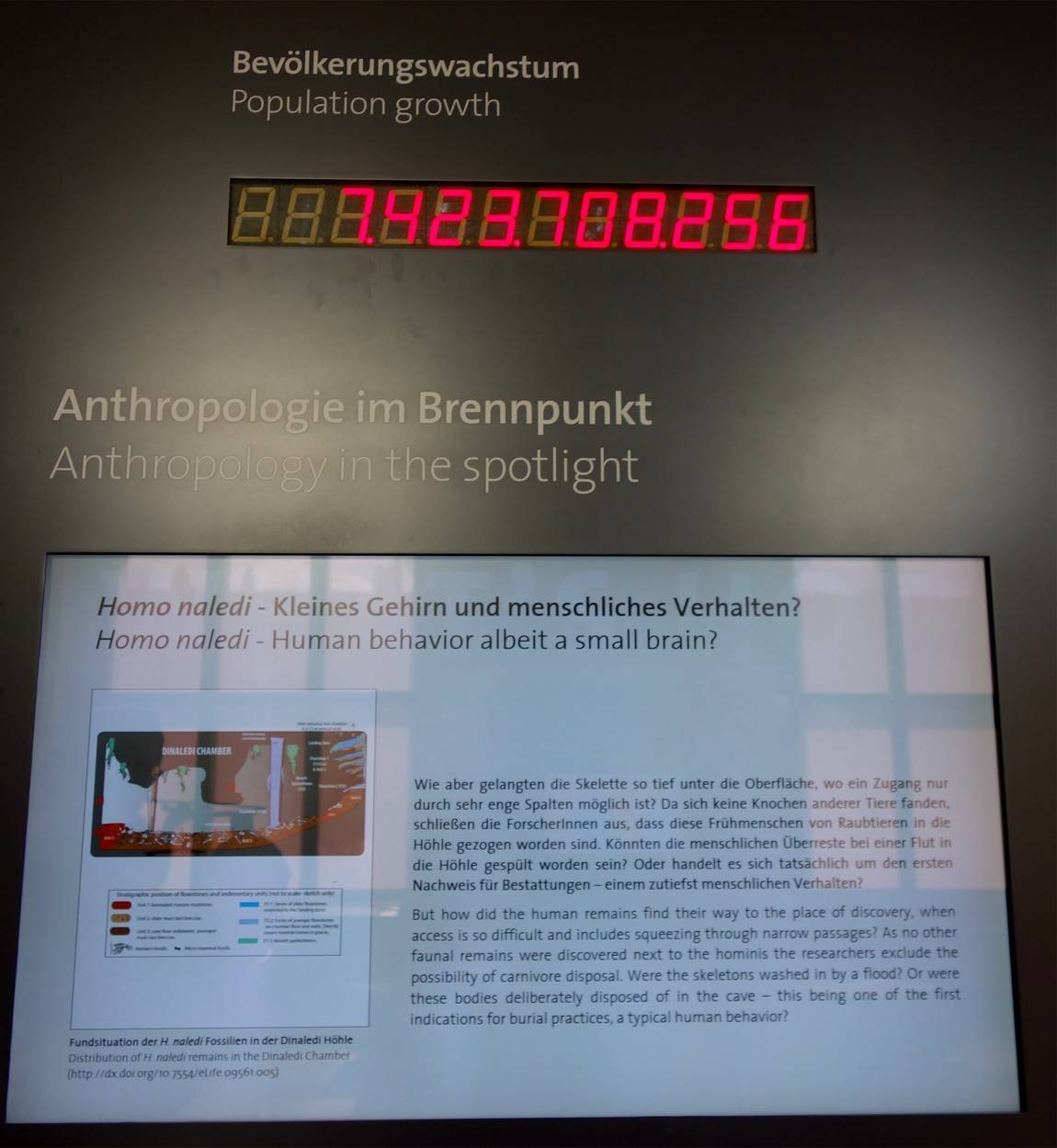 На стене есть небольшой стенд, где показаны бегущие в движении цифры, показывающие ежесекундно меняющиеся количество населения всего земного шара, это около семи миллиардов человек.