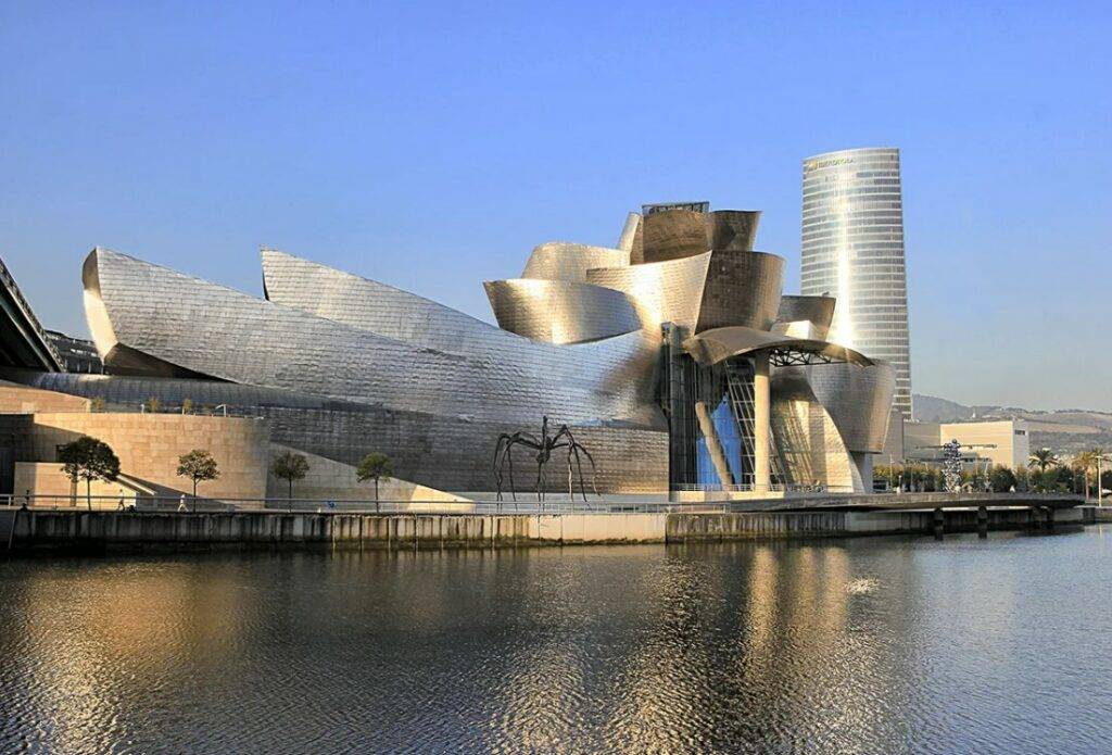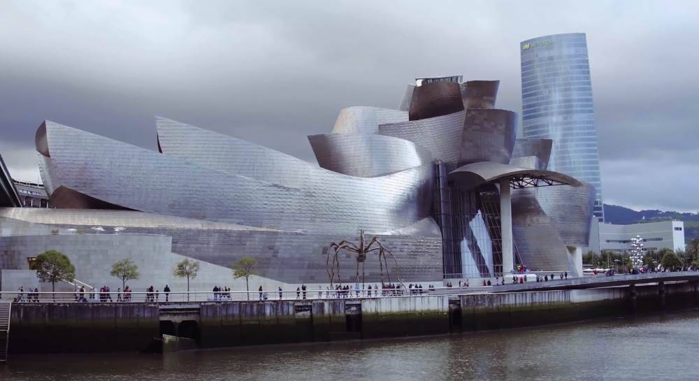 Не так давно Бильбао был серым, грязным, убывающим мегаполисом. Сейчас город привлекает ежегодно более миллиона туристов со всего мира. Благодаря строительству Музея Гугенхайма и ряда других зданий стало известно о феномене так называемого “эффекта Бильбао”. Здание музея с испанским названием Museo del Guggenheim было открыто 18 октября 1997 года. Фрэнк Гери вместе с командой архитекторов под его руководством разработали структуру, отличающуюся волнистыми формами и изгибами. Кроме того, наружные стены здания были покрыты 60 тоннами титанового листа. Здание принимает разные формы как при дневном, так и при искусственном освещении, такие как гигантский цветок розы или корабль с парусами и даже рыба. Инновация музея была основана на использовании компьютерной программы Catia при проектировании многогранного твердого тела объекта. Эта программа ранее использовалась Европейским космическим агентством при работе над формами корпусов самолетов и искусственных спутников.