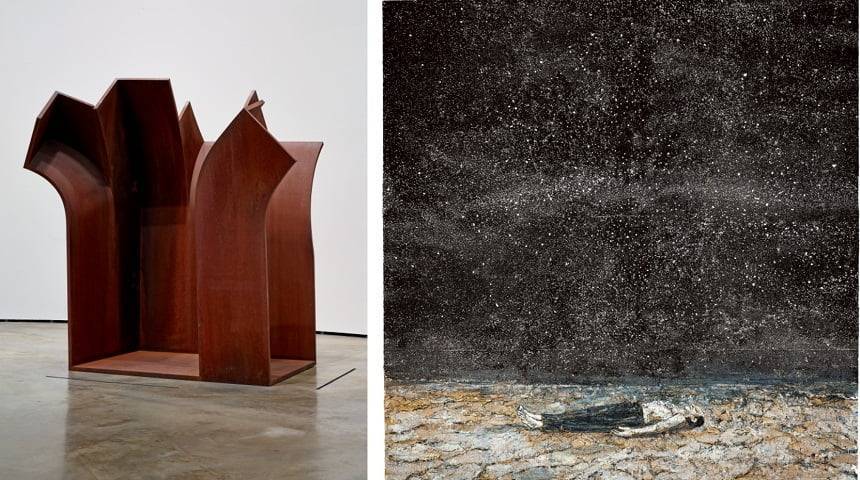 Подобные пластинам Ричарда Серра конструкции Эдуардо Чилида под остроумным названием: «Советы Космосу V» и Ансельм Кифер: «Падающие звёзды» (1995).