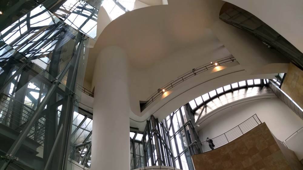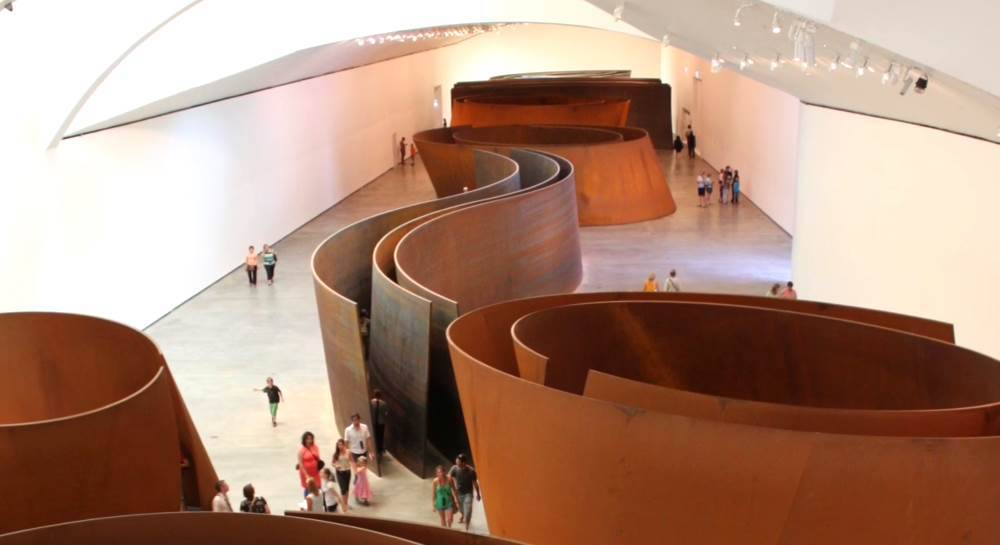 Музей в Бильбао на своих стенах собрал тяжелый налёт памяти, чтобы показать ржавыми пластинами Ричарда Серры, какой осадок оставил век, на похоронах которого играл саксофон, а рождение осветила сигнальная ракета с «Титаника». Гери находит способ передать эмоциональную впечатлительность своих современников. XX век — тяжёлый, тучный, грозный, и экспозиция выглядит монотонной, озябшей, как весь музей, закованный во льды стекла. Посетитель не забудет угрожающую белизну свернутых над ним листов огромной бумаги, чувство неустойчивости, тупика и нехватки воздуха. Внутри музей — что-то между египетской пирамидой и тонущим кораблем.
