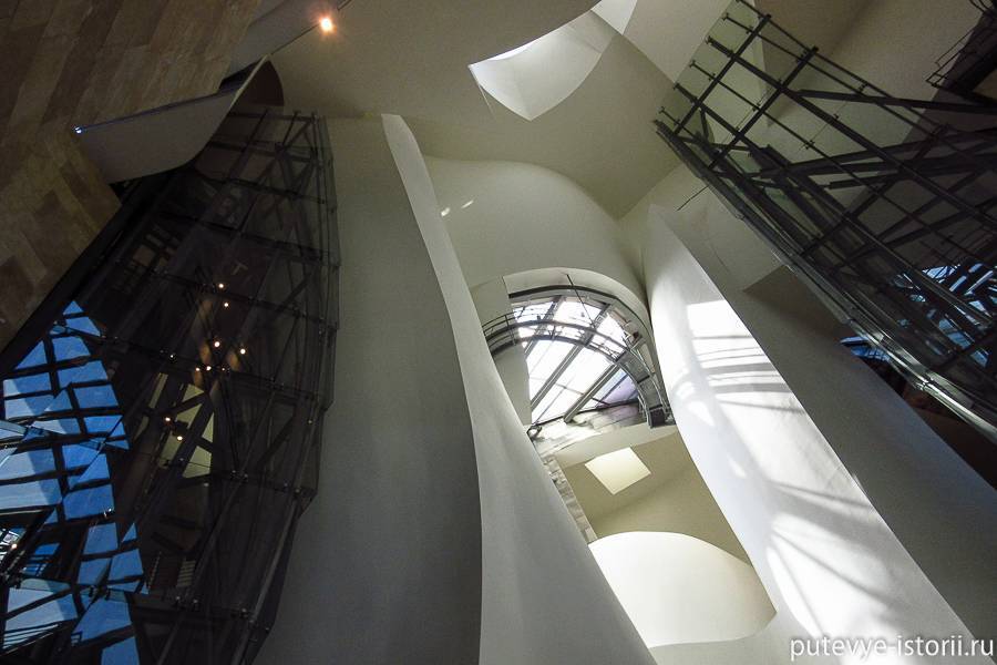 Место для стройки выделили на берегу речки Нервион, раньше здесь располагались железнодорожные пути и различные склады. Музей Гуггенхайма в Бильбао является, по сути, стальным каркасом, который состоит из широких секций трехметровой решетки. Необычайную пластичность конструкции обусловила вовсе не форма отдельных частей каркаса, а их соединение. Затем были смонтированы внутренний и наружный слой здания, далее – облицовка. И можно сказать, что музей закончен.